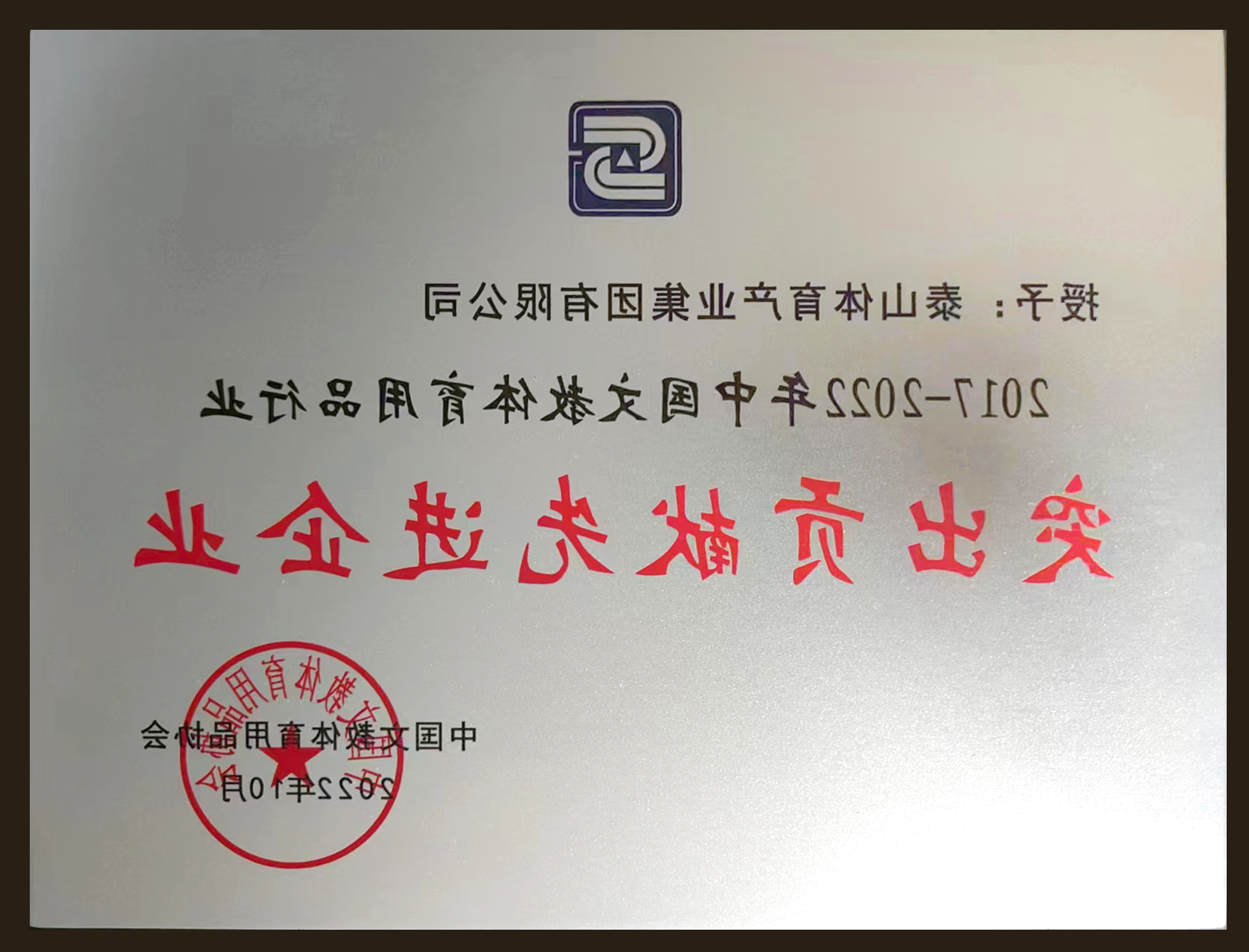 体育荣获“中国文教体育用品行业突出贡献先进企业”